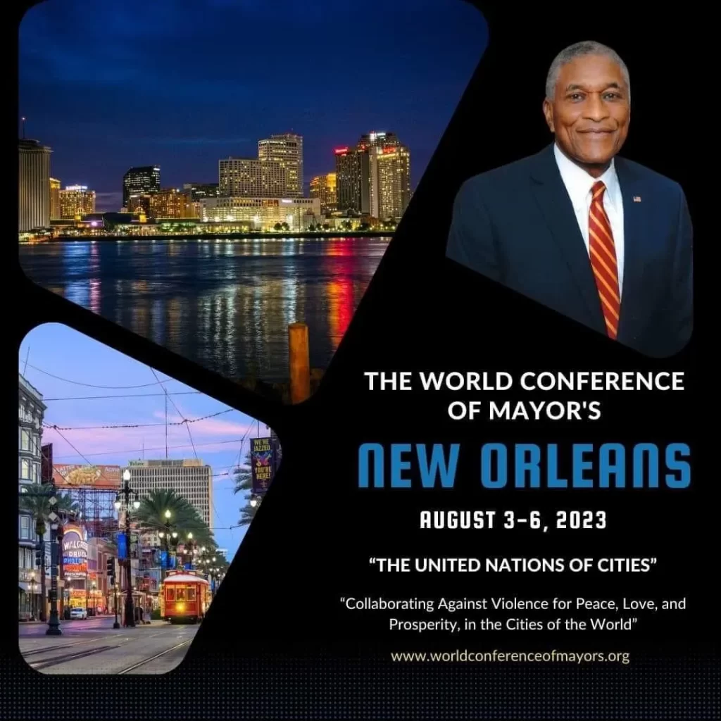 We are inviting you to attend, and participate in, The World Conference of Mayors, “United Nations of Cities” Collaboration Conference, in historic New Orleans, Louisiana, USA, August 3-6, 2023. You will be joined by other national, and international, elected, and appointed officials, our national, and our international, Black policy making organizations, as well as leaders and members of other national and international organizations. This international conference will provide substantive information that will give access to resources that will benefit all who attend, based on the WCM SEVEN T’s: Trust, Trade, Tourism, Technology-Transfer, Twin Cities, Treasury, and Training.